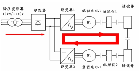 2、交流電力測(cè)功機(jī)處于發(fā)電狀態(tài)時(shí)將電能送回電網(wǎng)或者由電阻箱消耗,在電動(dòng)狀態(tài)能帶動(dòng)被試件運(yùn)轉(zhuǎn);