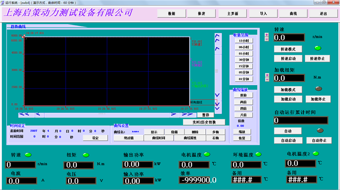 1、測(cè)試參數(shù):轉(zhuǎn)速、 扭矩、 功率、電流、電壓、輸入功率、效率; 2、參數(shù)顯示方式: 計(jì)算機(jī)屏幕顯示; 3、數(shù)字設(shè)定扭矩值,DTC自動(dòng)控制; 4、打印試驗(yàn)報(bào)告; 5、空載試驗(yàn)、加載試驗(yàn); 6、具備倒拖功能; 7、動(dòng)態(tài)曲線顯示; 8、恒轉(zhuǎn)速控制模式、恒扭矩控制模式。 五、主要測(cè)量及顯示參數(shù)、范圍和精度
